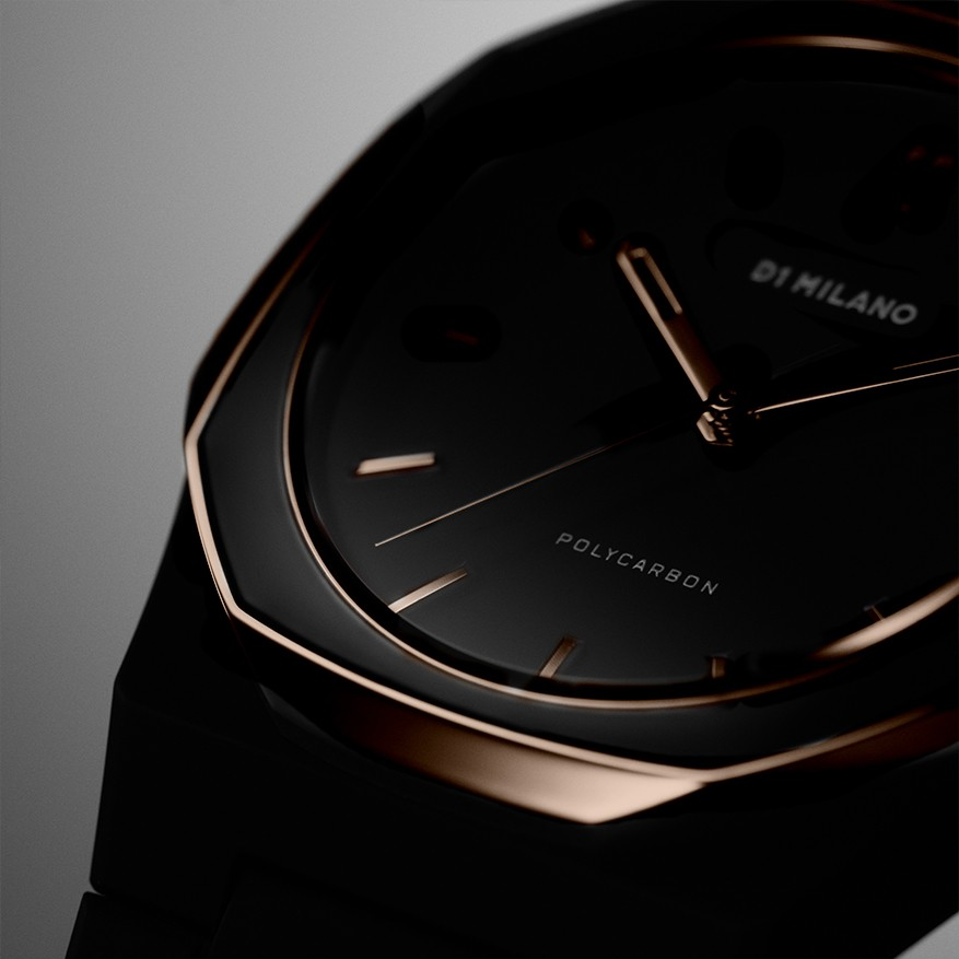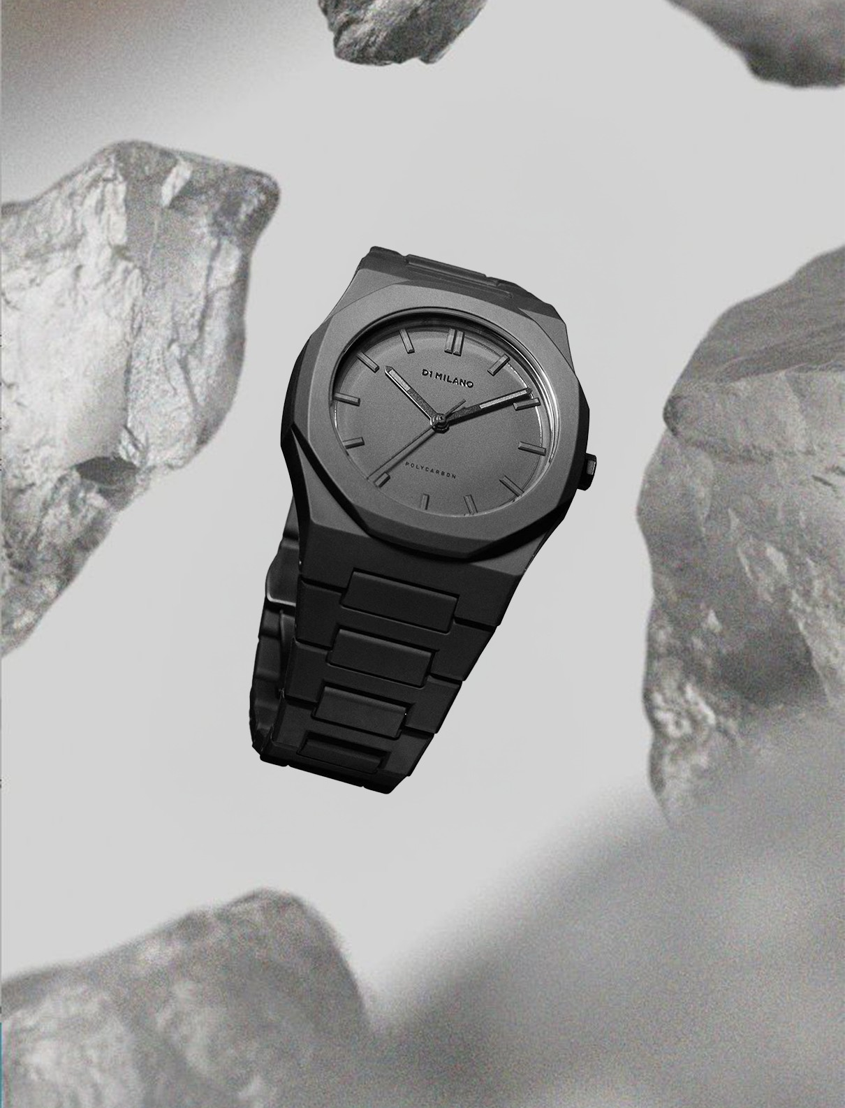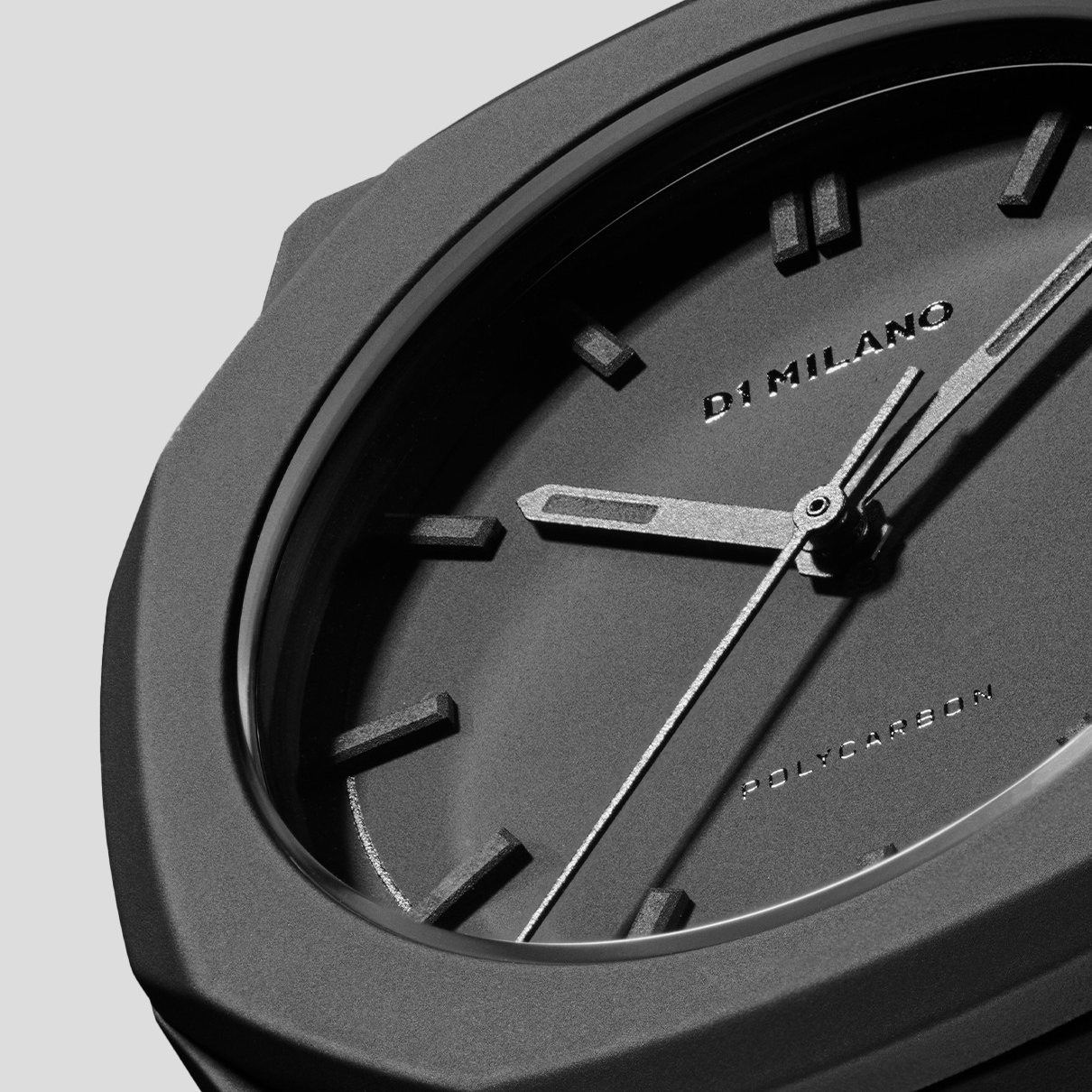 POLYCARBONコレクションは、軽やかな装着感とミニマルな美しさを兼ね備えたデザインウォッチ。腕元に、機能美という名のアクセントを。