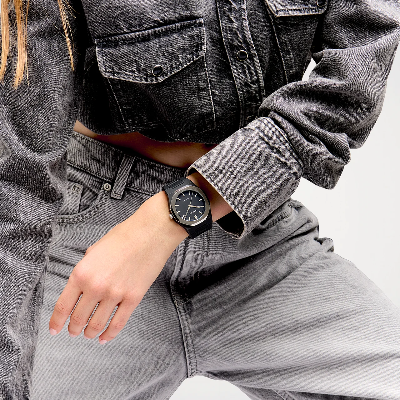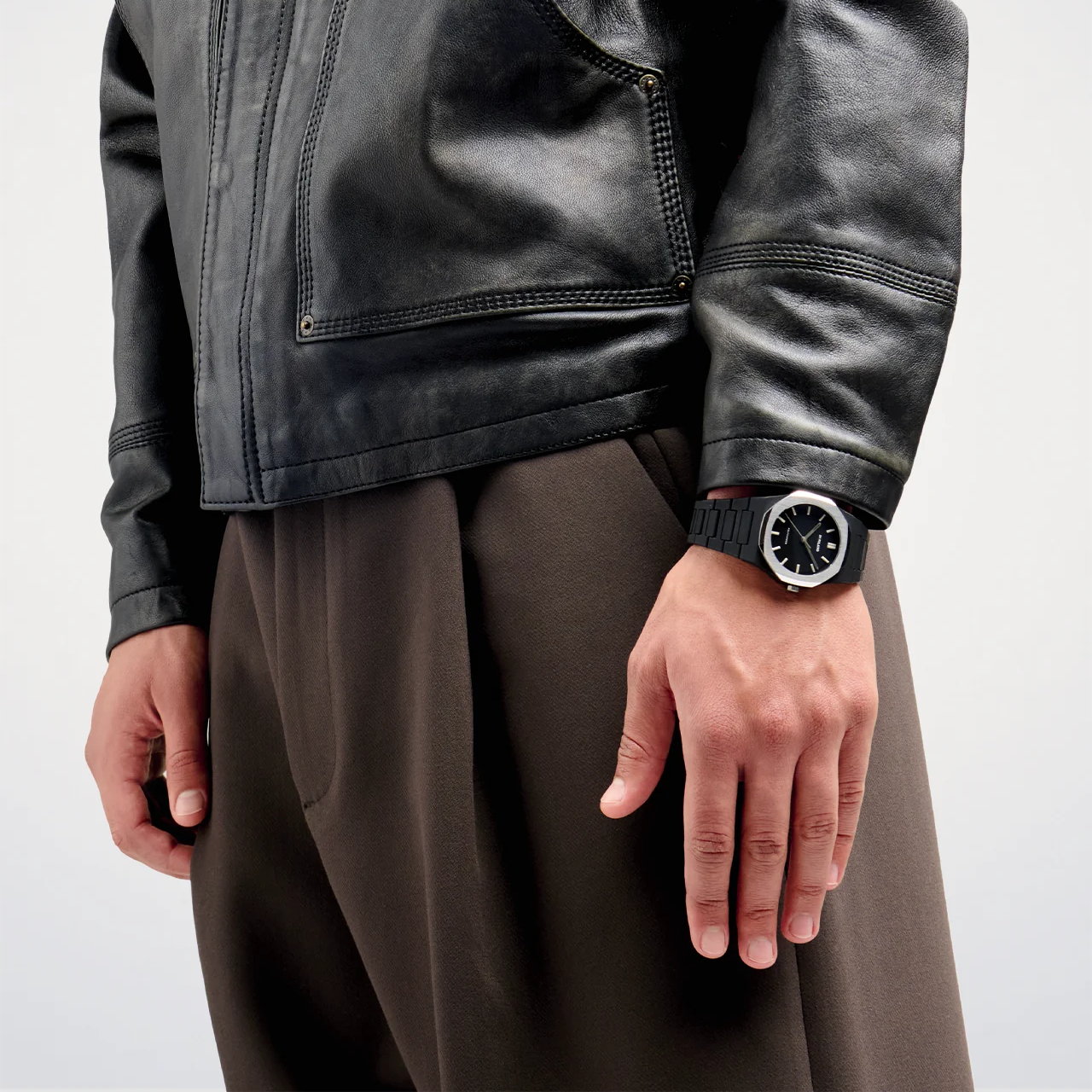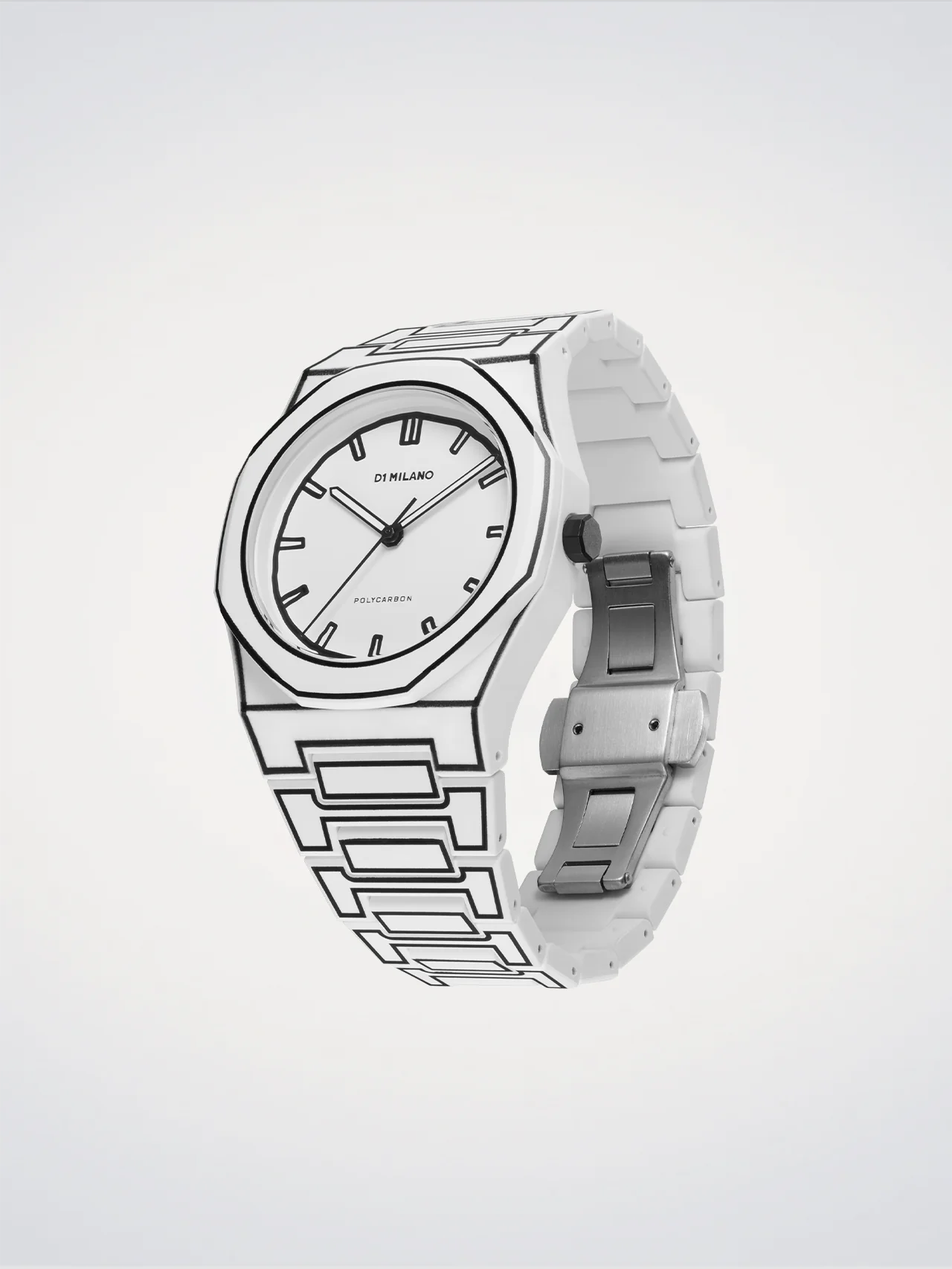 POLYCARBONコレクションは、軽やかな装着感とミニマルな美しさを兼ね備えたデザインウォッチ。腕元に、機能美という名のアクセントを。