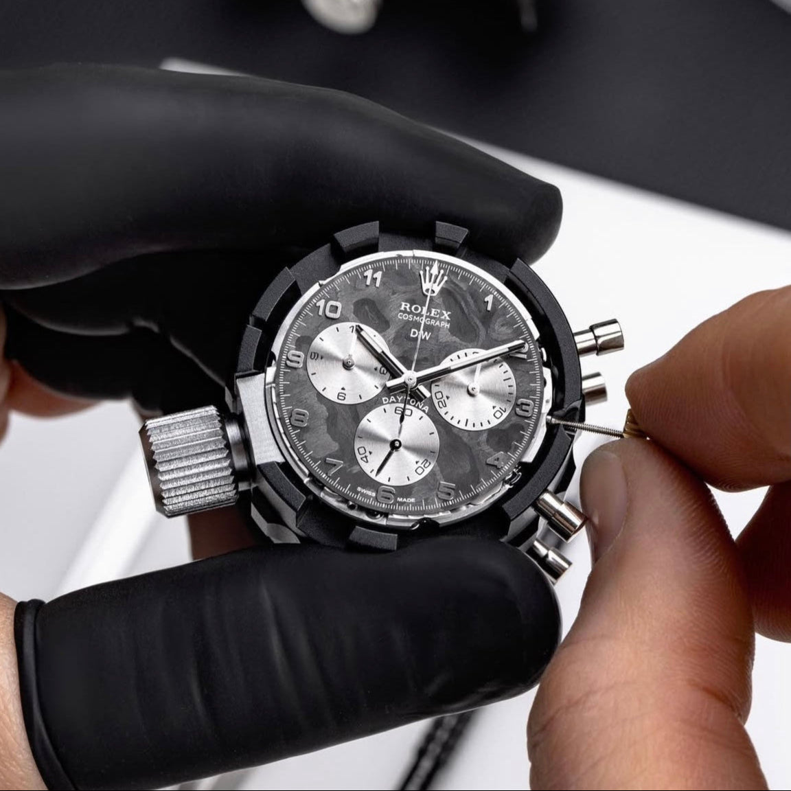 熟練職人が手がけるDiWのカスタムウォッチは、すべて数量限定。一本ごとにシリアルナンバーが刻まれた、唯一無二のタイムピースです。ベースにはロレックスなどの名機を採用し、細部までこだわり抜いた仕上がりが魅力です。