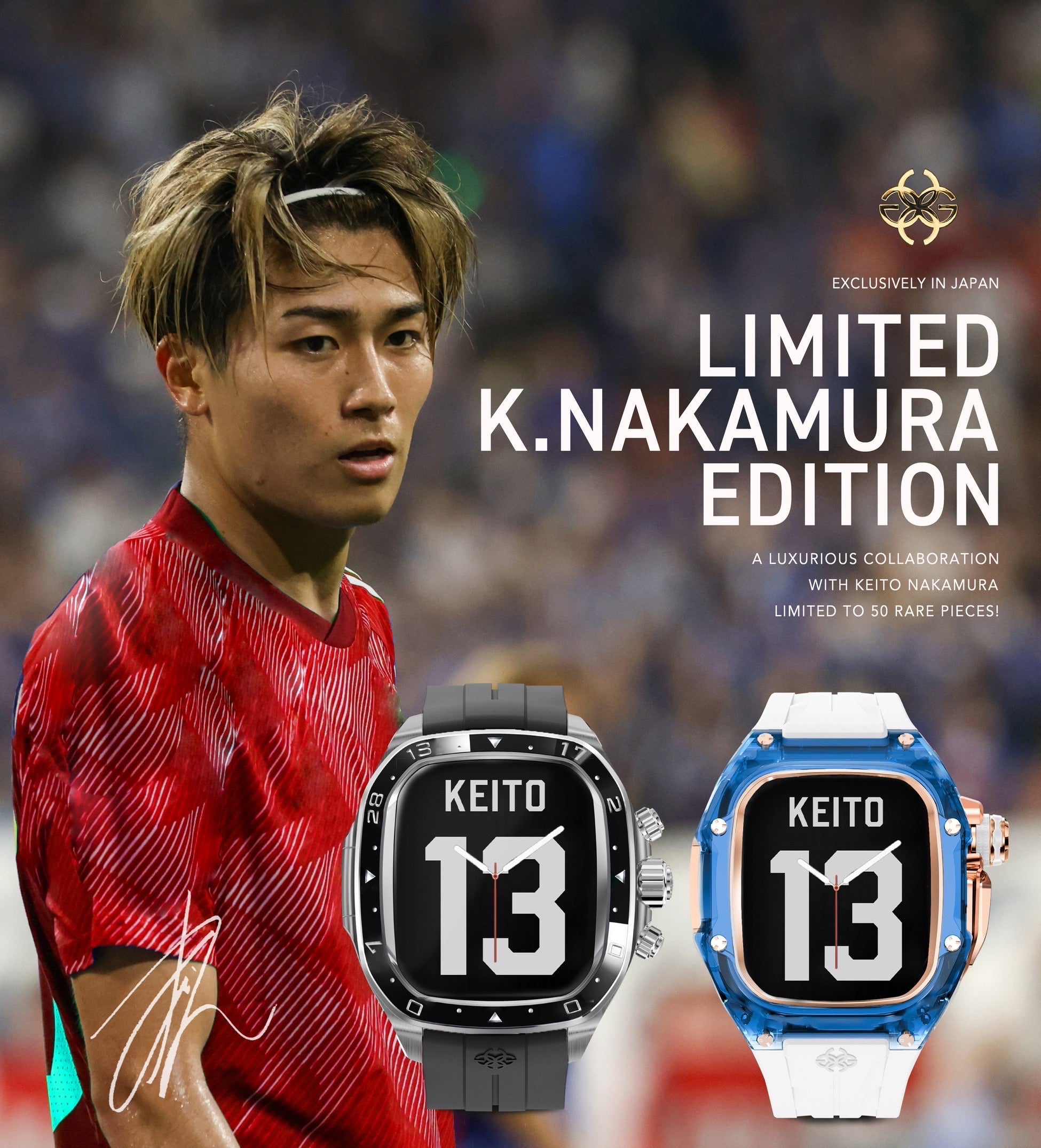 GOLDEN CONCEPTのブランドアンバサダーであり、サッカー日本代表としても活躍する「中村 敬斗」選手とのコラボレーションモデルがついに登場。プレーでもスタイルでも魅せる中村選手の感性を反映した、洗練されたデザインとディテールが光る特別モデルです。