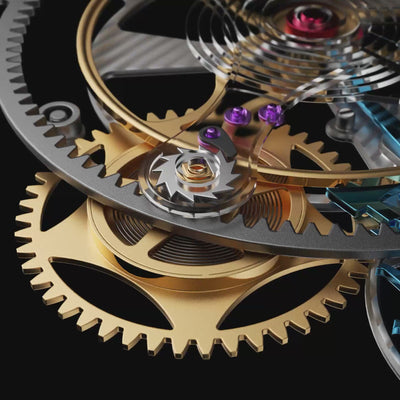 蓄えた力を一定のリズムに変え、歯車や針を正確に動かします。