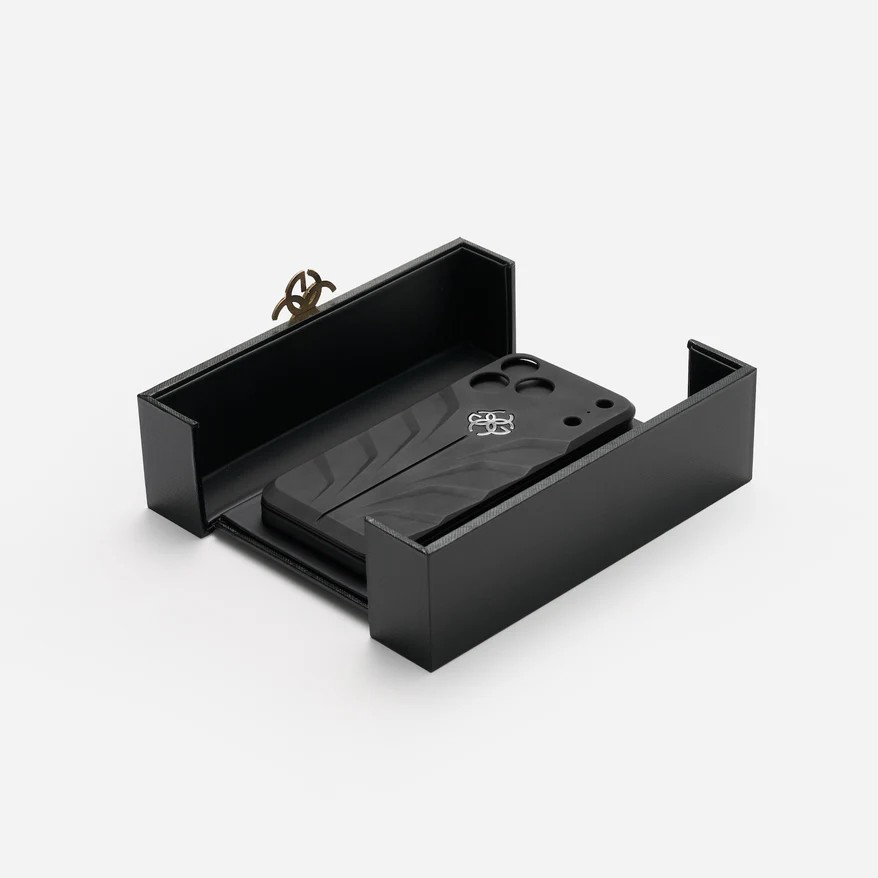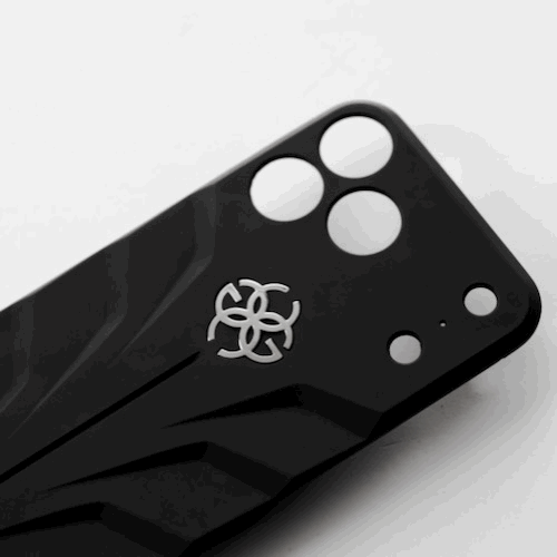 「レーシングスポーツ マグネティックシールド」は、チタニウムグレーのステンレススチール製ゴールデンコンセプトのエンブレムで仕上げられ、控えめながらも存在感のあるディテールを添えています。精密に設けられたカットアウトが、iPhone のカメラやマイク、フラッシュに正確に対応し、機能性とシームレスなデザインを両立しています。