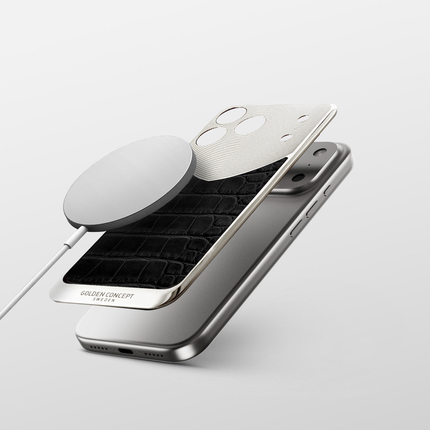 かつてない存在感を放つ、最高峰のマグネティック・シールド艶やかのなブラックのアリゲーターレザーを、高光沢のステンレススチール製バックプレートに美しく組み合わせた本作。異なる質感が織りなすコントラストが、圧倒的な存在感を生み出し、iPhoneを単なるスマートフォンから、真のラグジュアリーアイテムへと昇華させます。