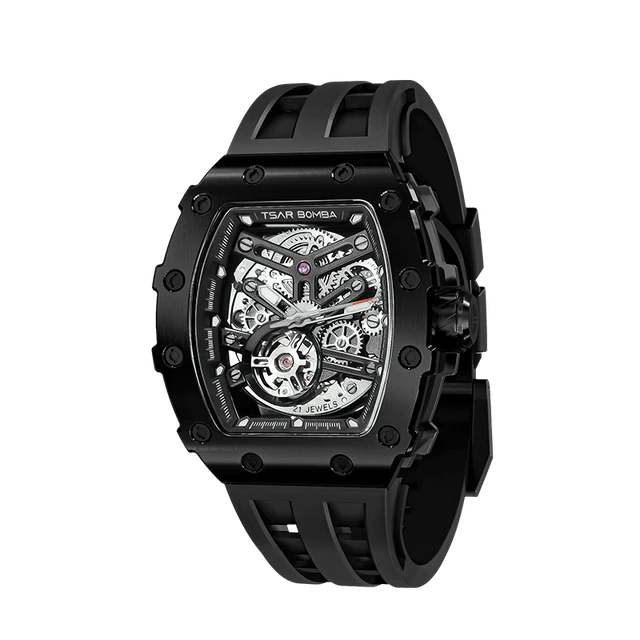 The appeal of this watch is its streamlined design, which is unified in black throughout. The three-dimensional tonneau-shaped case is fitted with sapphire glass and a Japanese automatic movement, making it both stylish and practical. It blends naturally with any style and gives a calm presence to your wrist.