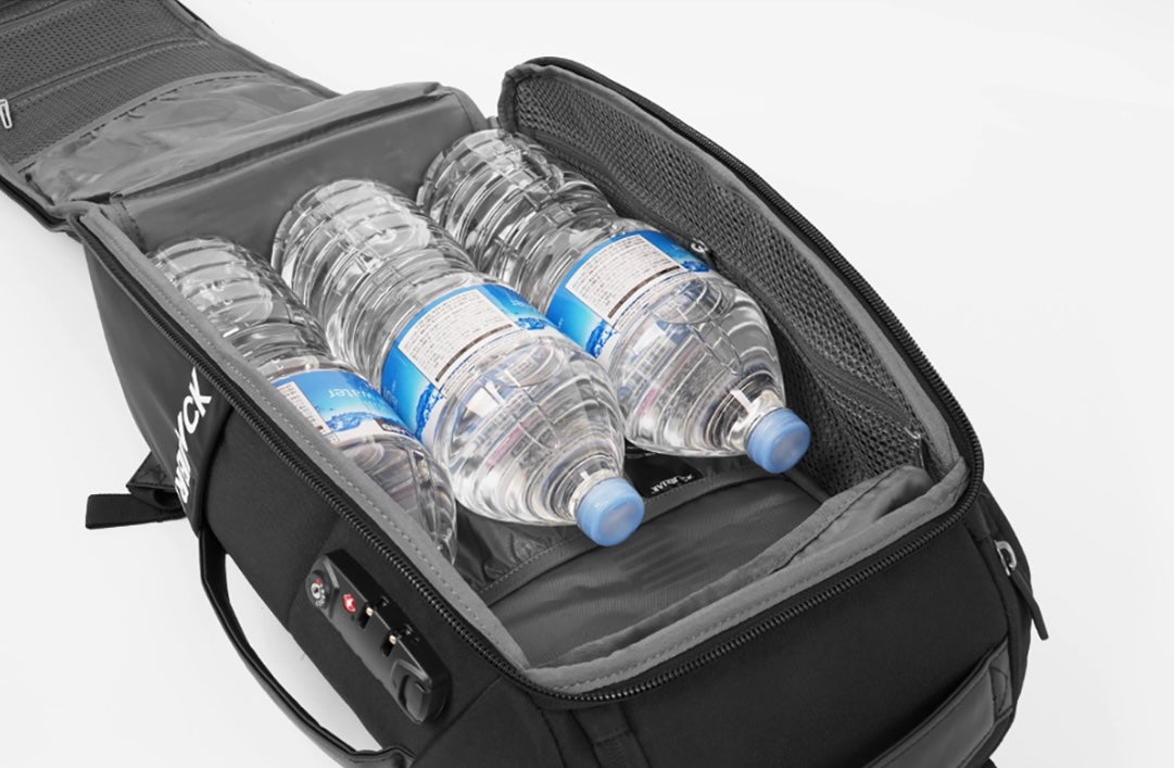 It is a highly functional bag that can be used with confidence while traveling thanks to its hook strap for securing skis or snowboards and various straps that fit securely to the body, as well as the top zipper and elastic side pockets for smooth storage.It also comes equipped with a TSA lock, making it a safe and secure bag to use while traveling.