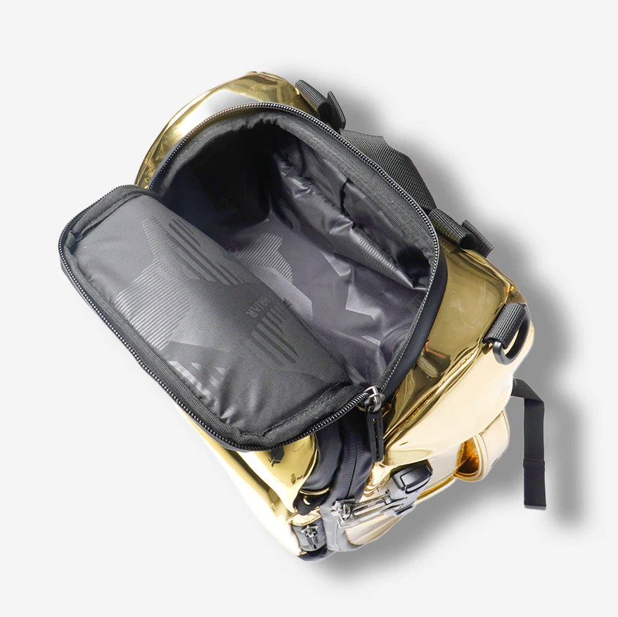 機能性とタフさ、洗練されたラグジュアリー感が融合。鮮やかに輝くゴールドのボディにブラックのディテールを施し、都会的で大胆なデザインを際立たせたバッグ。シティユースからアウトドアまで、多目的に使える大容量で、どんなシーンにも対応します。
