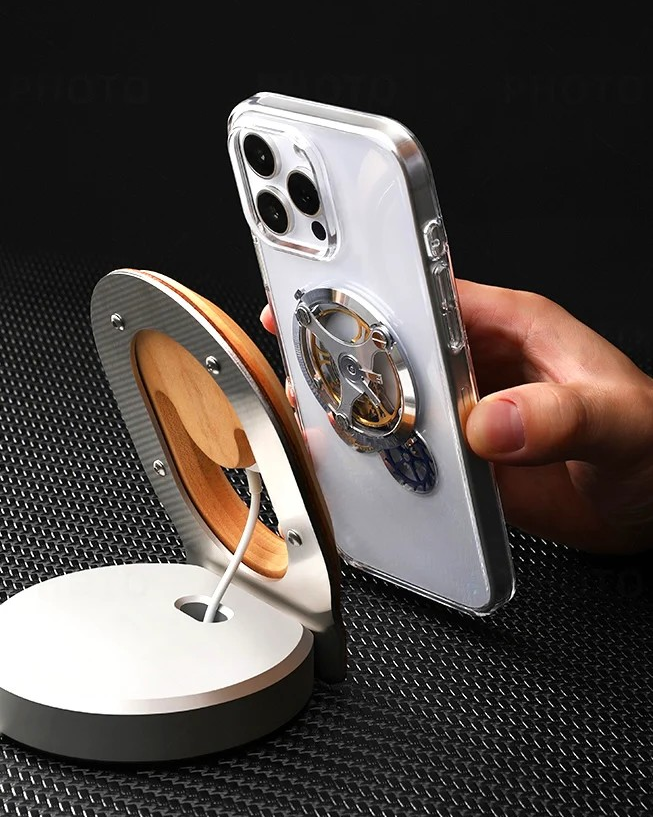 本ケースはMagSafe対応の充電器やアクセサリーと磁力でしっかり固定でき、装着中も安定して使用できます。内部の精密な機構を守るため、MagSafe非対応のワイヤレス充電器はご使用いただけません。安全性と耐久性を兼ね備えた設計です。